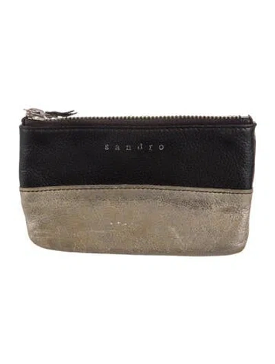 Sandro Pouch Black Leather Printed Silver-Tone Hardware Canvas Lining Exposed Zip Closure Unfortunately, due to restrictions, this item may not be eligible for shipping in all areas. | Sandro Leather Printed Pouch in Black