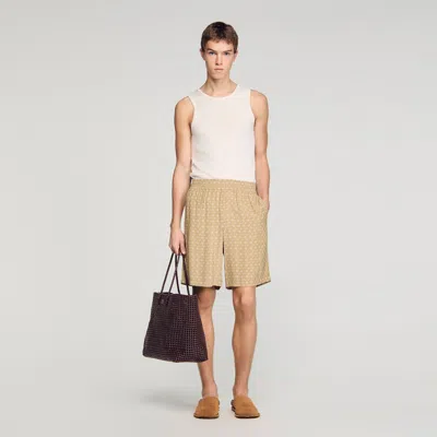 Floaty shorts with a chain link motif and elasticated waist. Sandro Men's chain link motif shorts Floaty fabric Floaty fit Elasticated waist 2 side pockets Patch pocket on the back