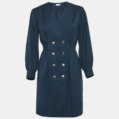 Pre-owned Navy Blue Pinstripe Crepe Tailored Sheath Dress S