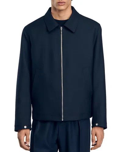 Sandro New Full Zip Jacket.Color:Deep Blue.Size:XS.Material:Shell: 50% wool/50% polyester; lining: 100% viscose; pocket lining: 100% cotton.Jackets.