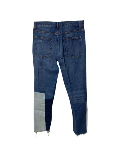 blue cotton five pockets belt loops frayed hem patchwork design Condition: EXCELLENT. This previously owned item is in near-perfect condition with no signs of damage or use.