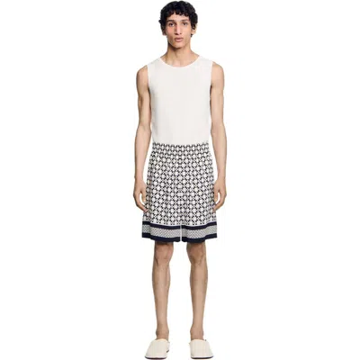 Floaty Bermuda shorts with elasticated waistband and grid motif. Sandro Men's floaty Bermuda shorts Lattice motif Elasticated waist Patch pockets Patch pocket on back The model is 6'2 tall and wears a size 38