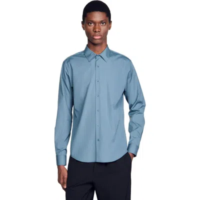 Long-sleeved shirt with classic collar and button placket. Sandro Men's classic shirt Shirt collar Long sleeves with button cuffs Button placket The model is 5'8 tall and wears a size S