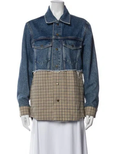 Sandro Denim Jacket Blue Printed Raw-Edge Trim & Pointed Collar Flap Pockets & Snap Closure Designer Fit: Jackets by Sandro typically fit true to size. | Sandro Printed Denim Jacket in Blue, Women's S
