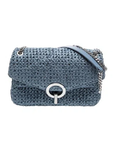 Sandro Shoulder Bag Blue Raffia Silver-Tone Hardware Chain-Link Shoulder Strap Single Exterior Pocket Suede Lining & Single Interior Pocket Turn-Lock Closure at Front | Sandro Raffia Shoulder Bag in Blue
