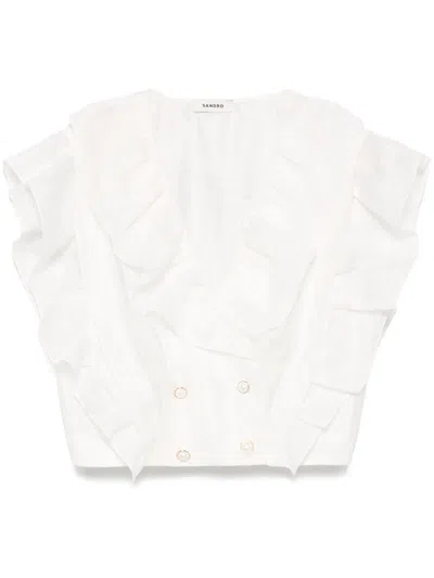 SANDRO Ruffled Blouse In White