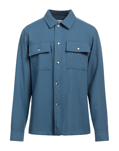 flannel, no appliqués, solid color, classic neckline, long sleeves, snap button cuffs, snap buttons fastening, multipockets, overshirt , Color: Slate blue , Size: S