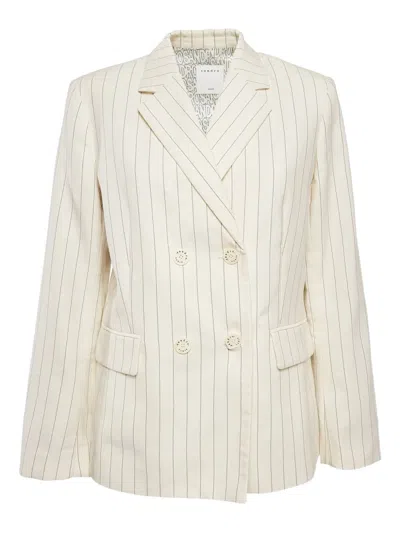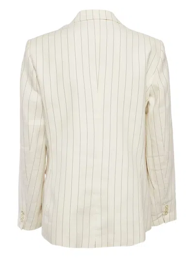 Pre-owned Striped Double-breasted Blazer In Neutral