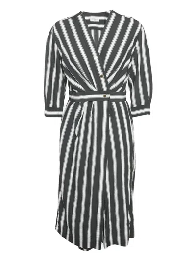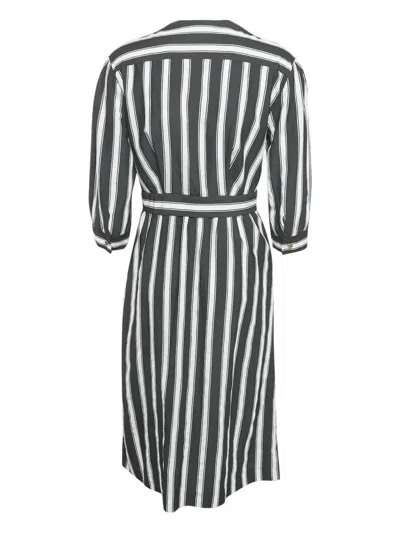 Pre-owned Stripe-pattern Midi Dress In Black