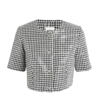 SANDRO Tweed Houndstooth Sequin Jacket In Multi