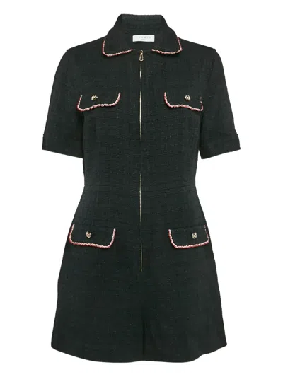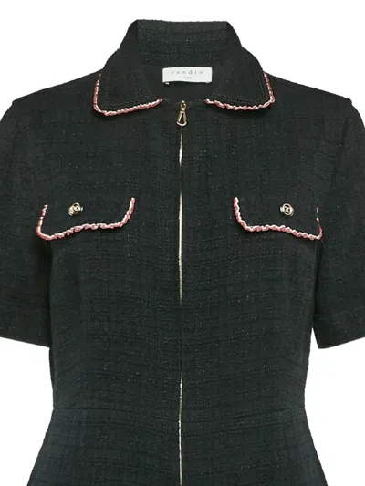 black tweed short sleeves front zip closure decorative pocket trim gold toned buttons Condition: EXCELLENT. This previously owned item is in near-perfect condition with no signs of damage or use.