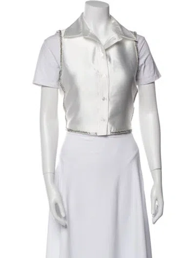 Sandro Vest White Crystal Embellishments & Pointed Collar Button Closure Designer size 0. Designer Fit: Jackets by Sandro typically fit true to size. | Sandro Vest w/ Tags in White, Women's XS