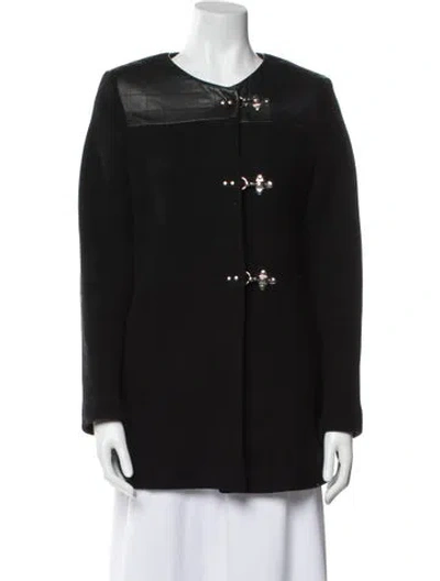 Sandro Wool Evening Jacket Blue Leather Trim Embellishment & Collarless Slit Pockets Designer Fit: Jackets by Sandro typically fit true to size. | Sandro Wool Evening Jacket in Blue, Women's M