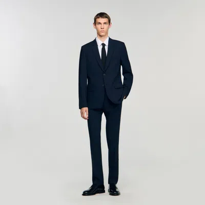 Classic wool suit jacket with button fastening and flap pockets. Sandro Men's wool suit jacket Classic fit 2 flap pockets Long sleeves 2 buttons