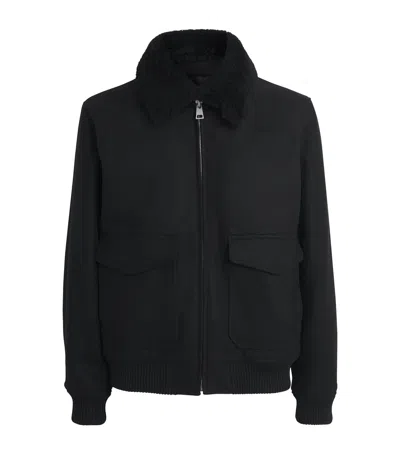 SANDRO Wool-blend Bomber Jacket In Black