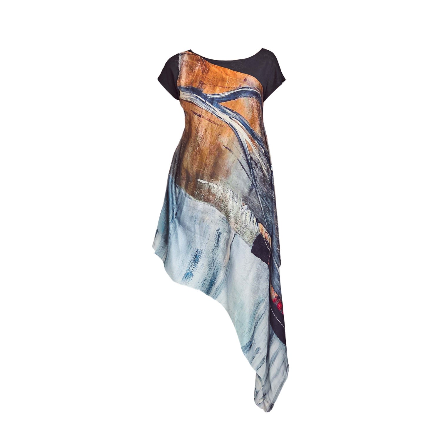 This exquisite garment features a beautifully textured linen knit shell, providing a comfortable and breathable foundation. The top is then adorned with a luxurious pure silk overlay, cascading gracefully over the body in a series of elegant drapes. The pièce de résistance is the Saniya custom graphic print, a unique and eye-catching design that adds a touch of modern sophistication. The print is meticulously applied to the silk overlay, creating a visually stunning effect that complements the overall aesthetic of the top. Whether you're dressing up for a special occasion or simply want to elevate your everyday wardrobe, this draped silk top is the perfect choice. Its luxurious fabrics, exquisite design, and unparalleled comfort make it a must-have for any discerning fashionista. 100% linen knit shell with silk overlay Dry Clean only
