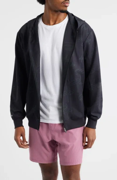Made to move without distraction, this hooded jacket brings a nimble snap of stretch with moisture-wicking performance and odor-resistant properties that go the distance. Front zip closure Fixed hood Split kangaroo pocket Ribbed cuffs and hem Water resistant Moisture-wicking fabric engineered for dryness and comfort Antimicrobial fabric engineered to inhibit the growth of odor-causing germs 91% polyester, 9% elastane Machine wash, line dry Imported