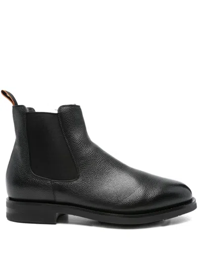 This Chelsea boot is a product with unique features that opens a new chapter in Santonis Made in Santoni craftsmanship innovation. The model is part of the Easy capsule and is characterised by its flexible and ultra-light construction of only 295 grams. Made of high quality leather, it is finished with a perforated nappa leather lining, a memory foam insole and a rubber sole with doubling graphics: a pattern that reworks the iconic Double Buckle motif and creates an innovative grip that ensures durability and slip resistance. The elastic system hidden in the upper offers an additional degree of comfort. - Easy model with ultralight construction - Made of leather - Elastic inserts on the sides - Rounded toe - Logo ribbon loop - Perforated nappa leather lining - Memory foam insole - Orange rubber sole with double buckle pattern - Santoni logo embossed on the insole DESIGNER ID: MGEO18937NEAXNTG N01 Composition: Upper: Leather Lining: Nappa Sole: Rubber