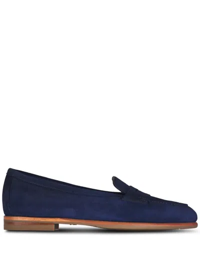 cobalt blue calf suede slip-on style low block heel penny slot piped-trim detailing round toe branded leather insole rubber sole. Colour. : Blue. Composition. : Lining Composition Calf Leather: 100.0%, Sole Composition Calf Leather: 100.0%, Outer Composition Calf Suede: 100.0%, Sole Composition Rubber: 100.0%. Country Of Manufacture. : Italy. MPN. : WUNY71031SI4SAEAU60. Size Family. : IT. .