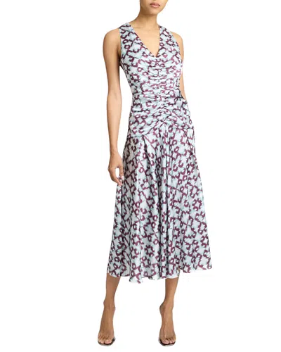 SANTORELLI Eden Sleeveless Fit And Flare Midi Dress With Center Ruching In Graphic Printed Charmeuse In Ocean Mist