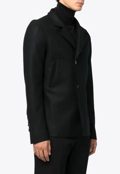 SAPIO Double-breasted Wool-blend Jacket In Black