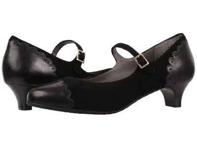 SAS Cate - Women's Shoes : Black : The covet-worthy Cate brings a feminine and sophisticated look. ; Rich suede uppers feature a soft leather toe and heel cap with scalloped edges and brogue details. ; Adjustable buckle closure at mary jane strap. ; Soft and breathable leather linings. ; A leather-lined, molded, and contoured polyurethane footbed can be removed and is designed to cushion each and every step. ; Features SAS Tripad Cushions designed to comfort all three pressure points: the inside ball, outside ball and heel for all-day support. ; Offers a supportive heel counter that extends under the arch for gentle support. ; Elegant Fit Last last contours the natural shape of your foot while offering extra wiggle room. ; Modest leather-wrapped heel. ; Durable and textured man-made outsole. ; Made in Italy. ; WARNING Measurements: ; Heel Height: 1 1 4 in ; Weight: 7 oz ; Product measurements were taken using size 8, width M - Medium (B). Please note that measurements may vary by size. | SAS Cate Women's Shoes Black : 6 W - Wide (C), Suede/Leather