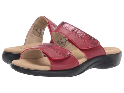 SAS Nudu Adjustable Slide - Women's Slide Shoes : Ruby/Cabernet : Add impressive style to your look with the SAS Nudu Adjustable Slide. ; Foot-Shape Last follow the natural shape and contour of your foo, providing all-day comfort. ; Two-toned leather upper with decorative stitch detailing. ; Padded straps are adjustable for a tailored fit. ; A plush, contoured insole covered in soft microsuede cradles your foot's natural curves and arches. ; Supersoft Sole provides shock-absorption and cushion with each step. ; Multi-Layered Tripad Comfort cushions the three pressure points of your foot: the inside ball, outside ball, and the heel. ; Made in the U.S.A. ; WARNING Measurements: ; Heel Height: 1 3 8 in ; Weight: 8 oz ; Platform Height: 3 4 in ; Product measurements were taken using size 8, width (S) Slim. Please note that measurements may vary by size. | SAS Nudu Adjustable Slide Women's Slide Shoes Ruby/Cabernet : 11 (WW) Double Wide, Leather