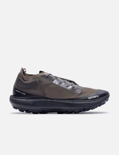 SATISFY TheROCKER Rippy™ 66 Monomesh upper Asymmetrical lacing system Serrated laces Reflective SATISFY logo on tongue, mudguard and heel Dual-width form Euforia™ super foam midsole TuneLug™ engineered outsole with Vibram® Megagrip™, Litebase™ and Traction Lug™ Comes with dust bag and one extra pair of insole in different thicknesses Color: Falcon