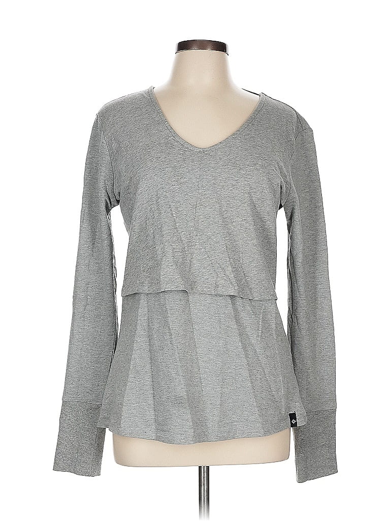 Satva Long Sleeve Top, Size: Large. Item Details: Gray, Solid Pattern, V Neck, Women's Tops, Organic Cotton/Modal, Fitted