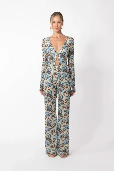 Lightweight pant with elastic waistband featuring original ocean-inpired two-tone print, may be worn over bikini and paired with matching top or coverup