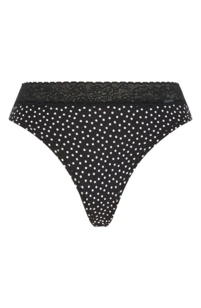 Essentials Lace Trim Stretch Cotton Thong In Black