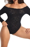 Slip into the soft and stretchy lace of this off-the-shoulder sleep bodysuit cut in a fitted silhouette. Pull-on style 73% nylon, 27% elastane Hand wash, dry flat Imported Black Owned/Founded