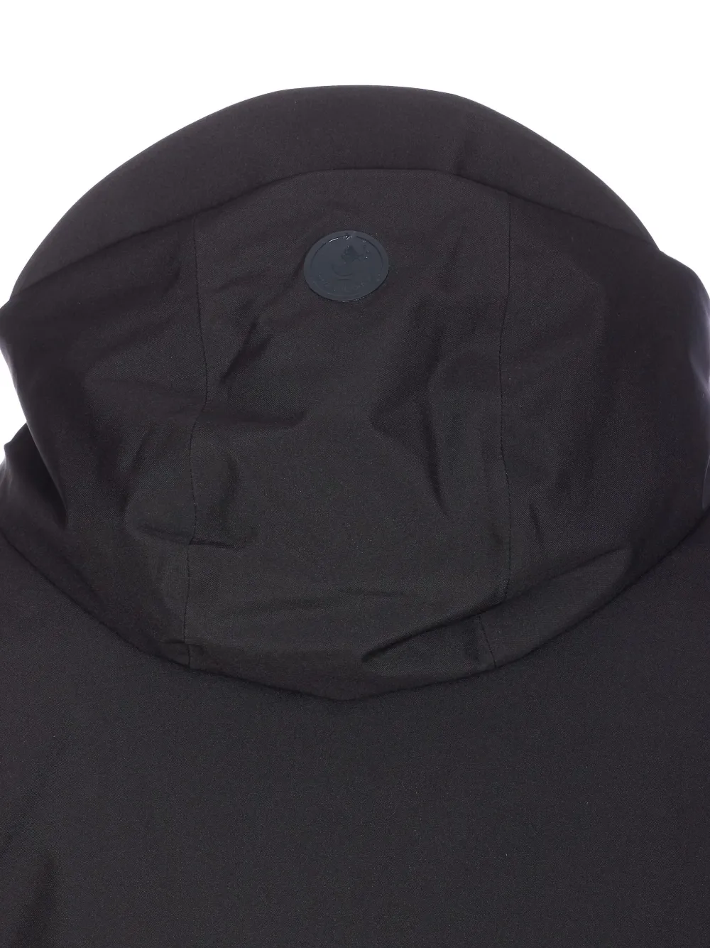 Save The Duck Black Coat With Zip And Buttons Closure, Long Sleeves, Zip Pockets, Hood Detail, Padded, US SIZE