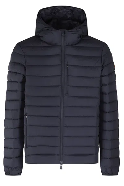 Juncus jacket - Save the Duck - Blue color - Quilted waterproof fabric - Hood with elasticated hem band - Long sleeves with elasticated cuff - Tone-on-tone silicone logo applied on left sleeve - Flush chest pocket with zipper - Flush side pockets with zip