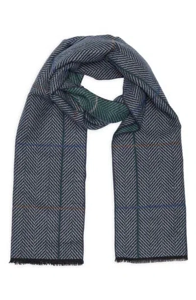 Contrast Check Stripe Recycled Polyester & Silk Scarf In Gray
