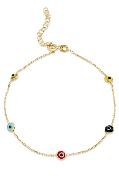 SAVVY CIE JEWELS 18k Gold Over Sterling Silver Multi Color Evil Eye Bracelet In Yellow