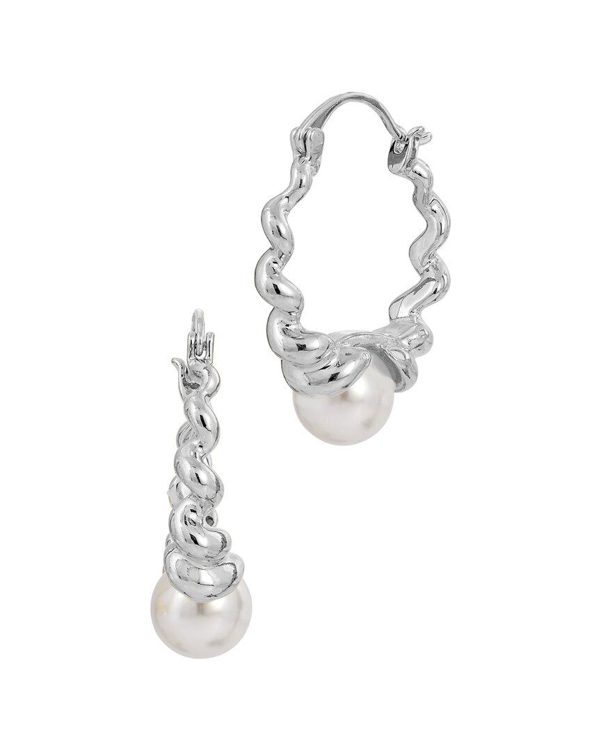 SAVVY CIE Silver 9mmmm Pearl Hoop Earrings In White