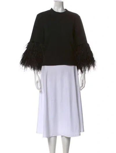 Saylor Sweater Black Feather Trim Three-Quarter Sleeve with Crew Neck Fit: Knitwear by Saylor typically fit true to size. | Saylor Crew Neck Sweater in Black, Women's S