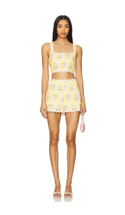 SAYLOR Vanka Set in Multi. Size M (also in ). Shell: 93% cotton 7% polyester Lining: 100% cotton. Dry clean. Side seam zipper closures. Contrast scalloped trim. Midweight linen fabric. Items sold as set. Shorts measure approx 12.5 in length. SAYR-WR133. SU2251913. Manhattan based contemporary label that transports Los Angeles relaxed and independent atmosphere to the east coast. California effortlessness with a distinct sense of cool downtown. Embodies modern feminine silhouettes, throw-on ease and impeccable fit.