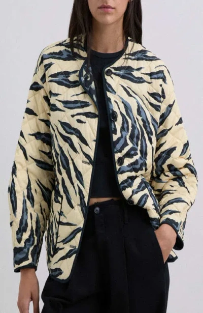 Reversible padded jacket and relaxed fit , animal print Long sleeve Two front pockets Button closure
