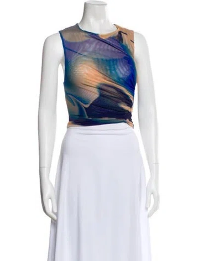 Scanlan Theodore Top Blue Patterned Sleeveless with Crew Neck Size not listed, estimated from measurements. Fit: Tops by Scanlan Theodore typically fit true to size. | Scanlan Theodore Patterned Crew Neck Top in Blue, Women's XXS