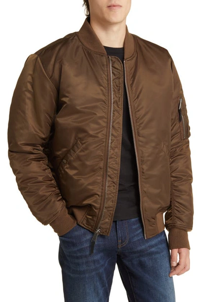 A quintessential bomber made from sleek nylon boasts all the details of the classic military flight style marked with logo embroidery on the sleeve. Not only is the fully insulated design water- and wrinkle-resistant but it has a bright orange lining traditionally used for visibility when downed fighter pilots were trying to get rescued (not that you'll ever find yourself in a similar situation).