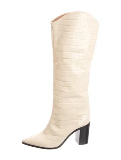 Schutz Embossed Leather Mid-Calf Boots Neutrals Pointed-Toes Designer Fit: This designer typically runs true to size. | Schutz Embossed Leather Boots in Neutrals, Women's US 8 | 8