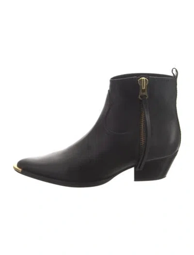 Schutz Leather Ankle Boots Black Pointed-Toes Exposed Zip Closure at Sides Designer Fit: This designer typically runs true to size. Unfortunately, due to restrictions, this item may not be eligible for shipping in all areas. | Schutz Leather Boots in Black, Women's US 7 | 7