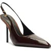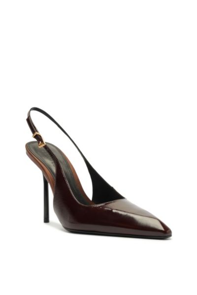 Leona doesn't whisper; she walks in like a headline. Coated in high-shine patent with a slender stiletto that climbs like ambition, she's anything but tame. A precise pointed toe gives her that no-nonsense bite. The slingback strap adds a sharp cut to the silhouette-clean, modern, and hot. Whether you're styling her with denim, leather, or late-night plans-Leona brings the attitude. Content + Care Patent Upper, Man Made Lining, Leather Outsole Spot Clean Imported Size + Fit Heel Height: 4.4" Schutz Leona Stilleto Heel in Maplewood, Women's at Urban Outfitters