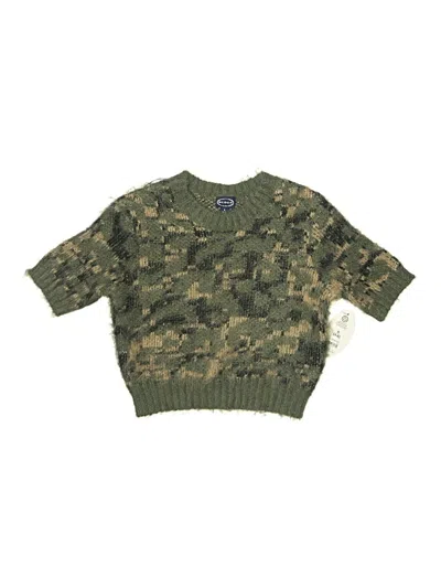 Scoop Pullover Sweater, Size: Small. Item Details: Green, Camo Pattern, Crew Neck, Short Sleeve, Girls Tops, Polyester/Polyester