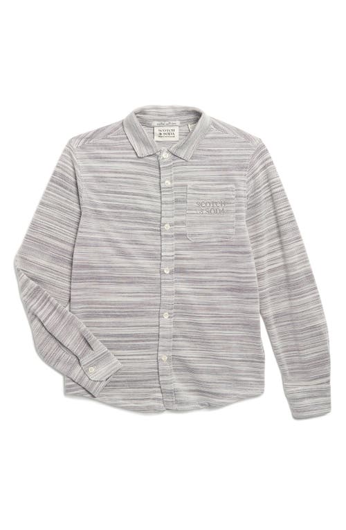 SCOTCH & SODA Kids' Space Dye Pique Button-up Shirt In White/pastel