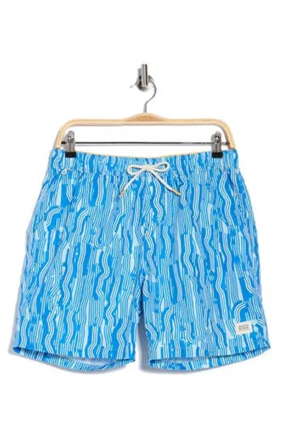 Print Mid Length Swim Trunks In Blue
