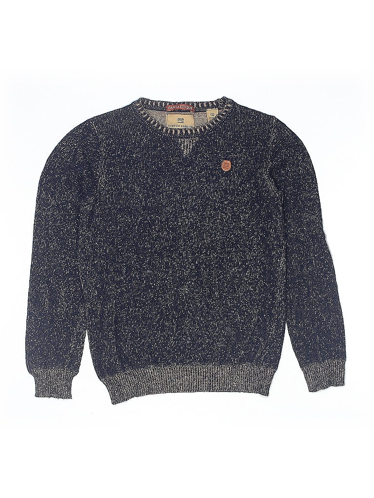 Scotch Shrunk Pullover Sweater, Size: 10. Item Details: Blue, Solid Pattern, Crew Neck, Long Sleeve, Embroidered, Boys Tops, Cotton/Viscose/Nylon