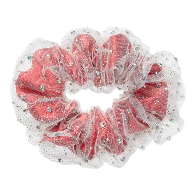 . Features: 2-layered scnci scrunchie has standout dimension. Classic red scrunchie wrapped in sparkly silver tulle. Rhinestones add festive glitz and shine. Soft, gentle holdno snags or breakage. Perfect for holiday parties or winter glam. Easy way to dress up any pony or bun. : :